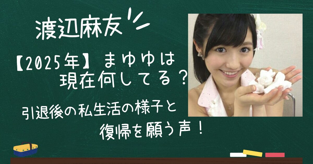 渡辺麻友さん(まゆゆ)の芸能界復帰は、現時点で公式な動きは一切なく、可能性は限りなく低いと見られています。