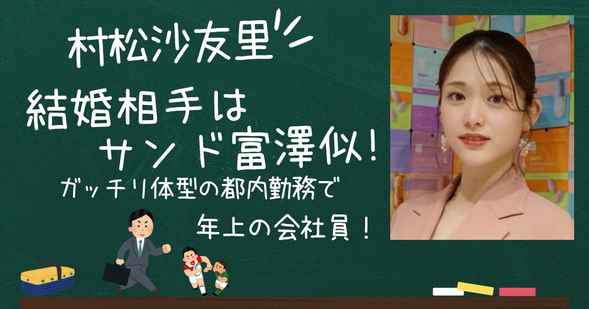 村松沙友里さんの結婚相手は、サンドウィッチマン富澤さん似のガッチリ体型の年上会社員です。